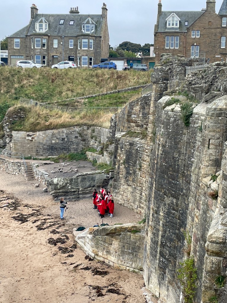 But there is much more than golf in St. Andrews. The town is home to the University of St. Andrews, the third oldest university in the English Speaking world and the oldest in Scotland, ranked as the best university in the UK. Our host’s daughter is a graduate. We witnessed a graduation class near the wall of the castle.