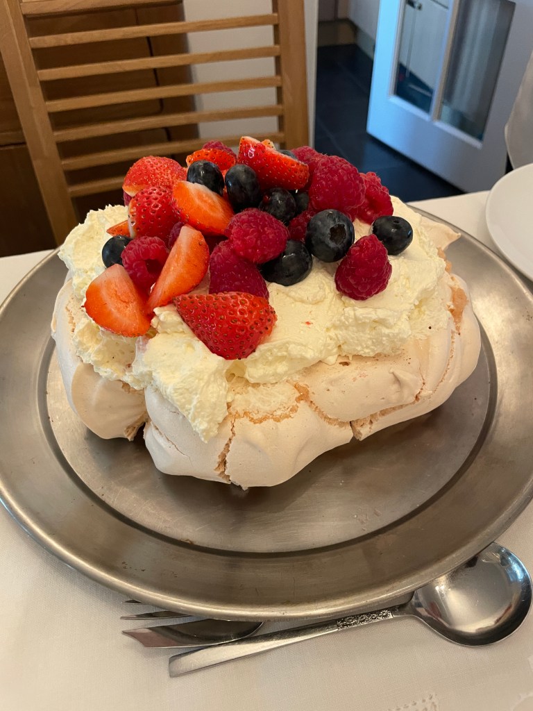 Nan is well known for a certain dessert. After dinner our wishes were granted. She served her delicious Pavlova!