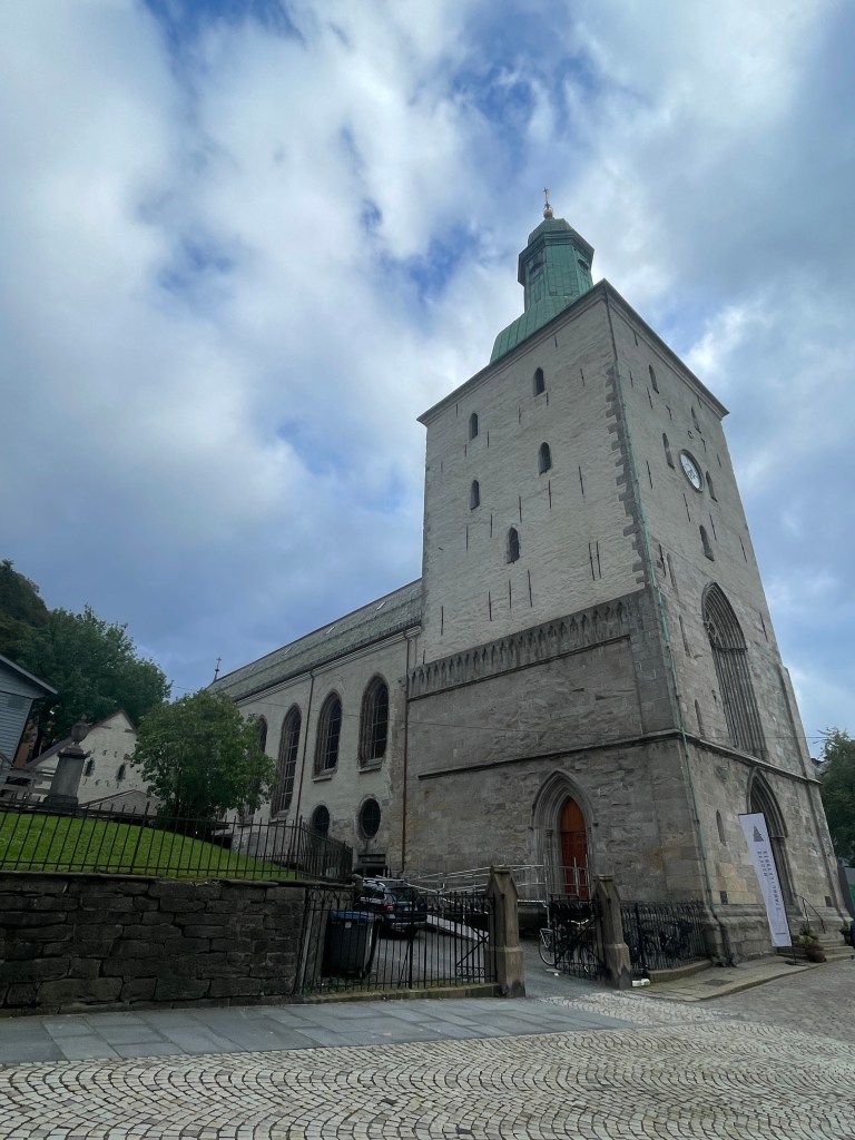 We landed to find an efficient, clean city. In comparison to Scotland, the architecture and design is streamlined as seen below in the Bergen Cathedral, where members of the Church of Norway worship.