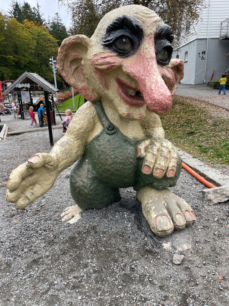 We took a funicular to the top of one of the surrounding hills to catch spectacular views of the city. We were greeted by the first of the many trolls we’d see in town. There were cafes, natural playgrounds for children and walking trails.