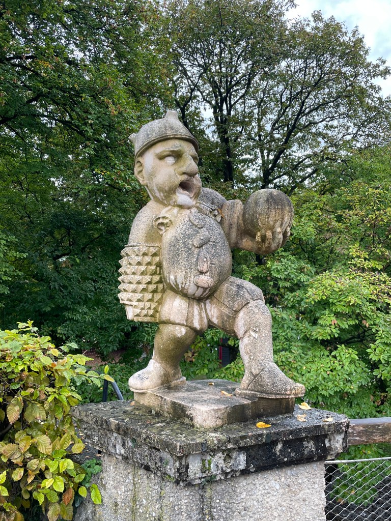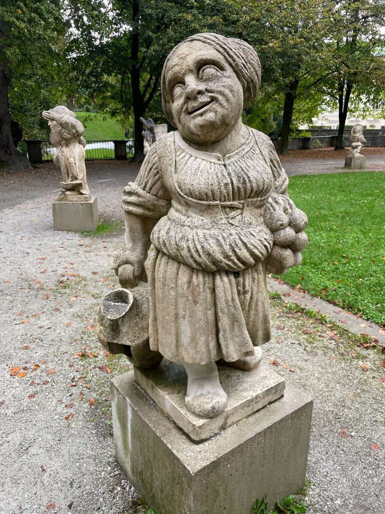 We checked out the dwarf sculptures in the garden. Originally, there were 28, carved out of marble in the 1700’s. They were removed and auctioned off during the enlightenment of the early 19th century. Returned in 1919, seventeen now stand entertaining passersby.