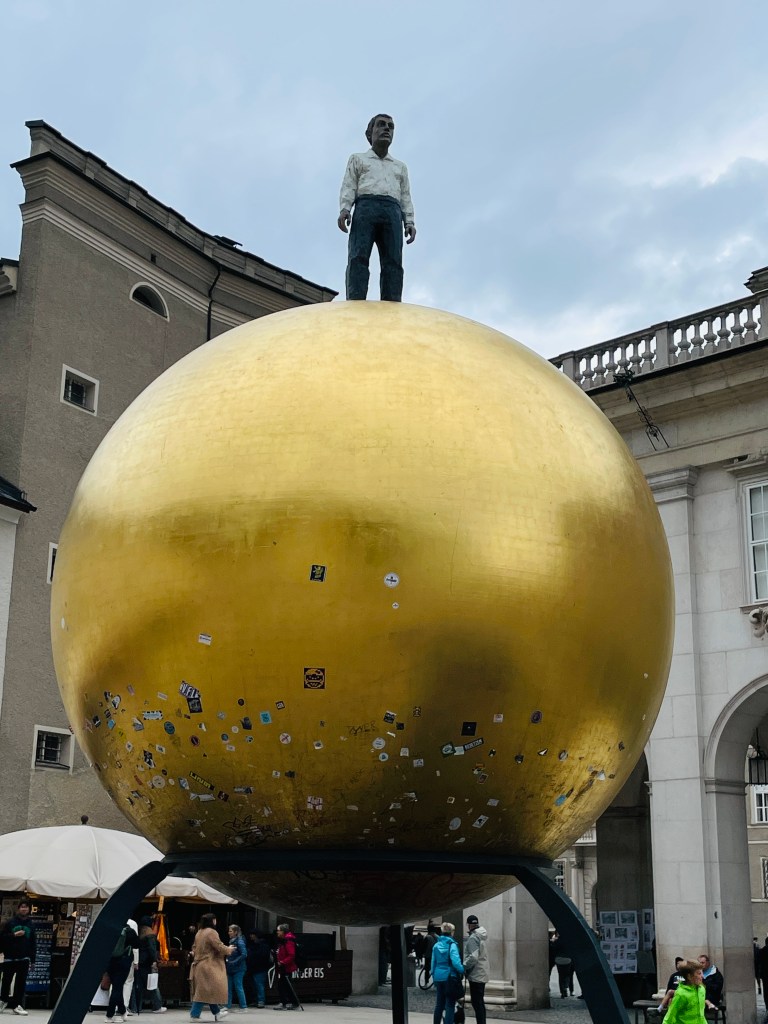 It’s representing the Mozart candy ball or Mozartkugel It’s the most popular Austrian confection, created by local patissier Paul Fürst in 1890 to commemorate the 100th Anniversary of Mozart’s death.
