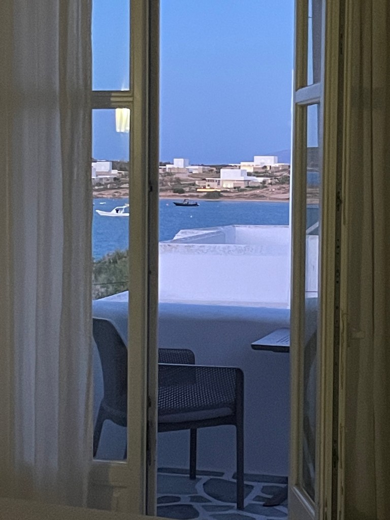 We arrived off the ferry to the hustle and bustle at the Port of Paros. Our ride was waiting and we admired the countryside on the quick drive to our hotel. Our priority, after 7 countries in 23 days was to relax.