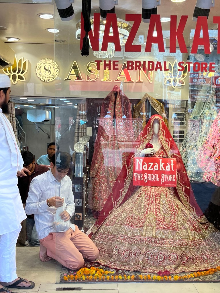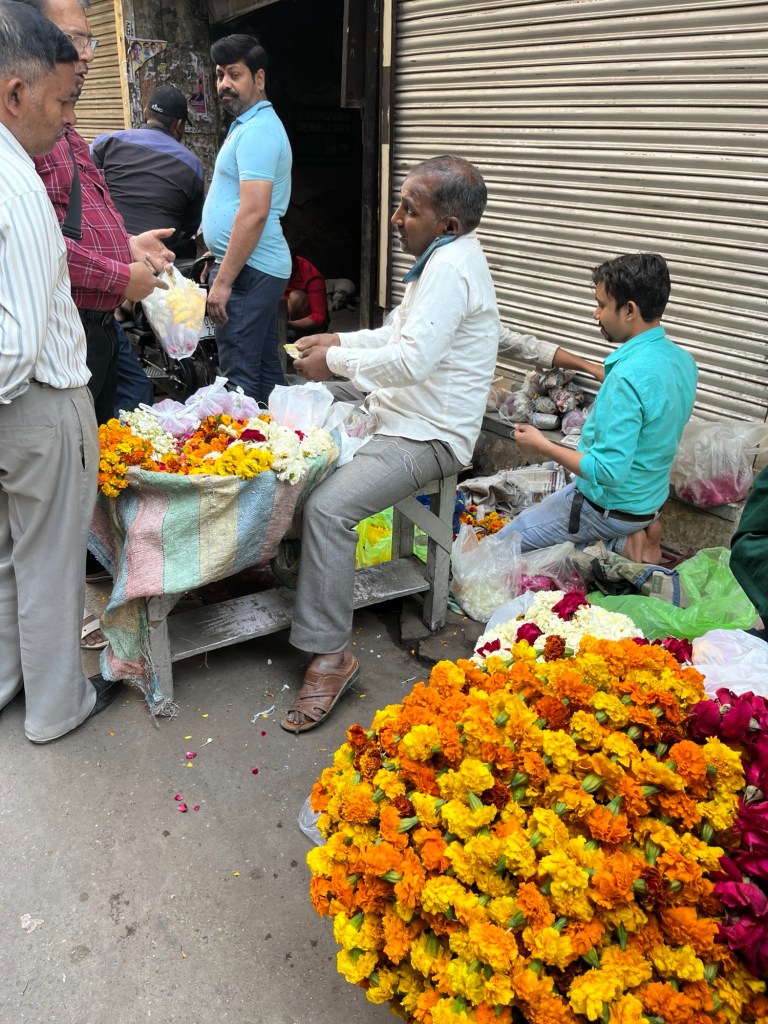 We walked down “wedding street” where brides and grooms and their families come to buy, not just dresses and jewelry, but all the flowers and decorations for their elaborate celebrations. The cost of a wedding in India often places families in debt.