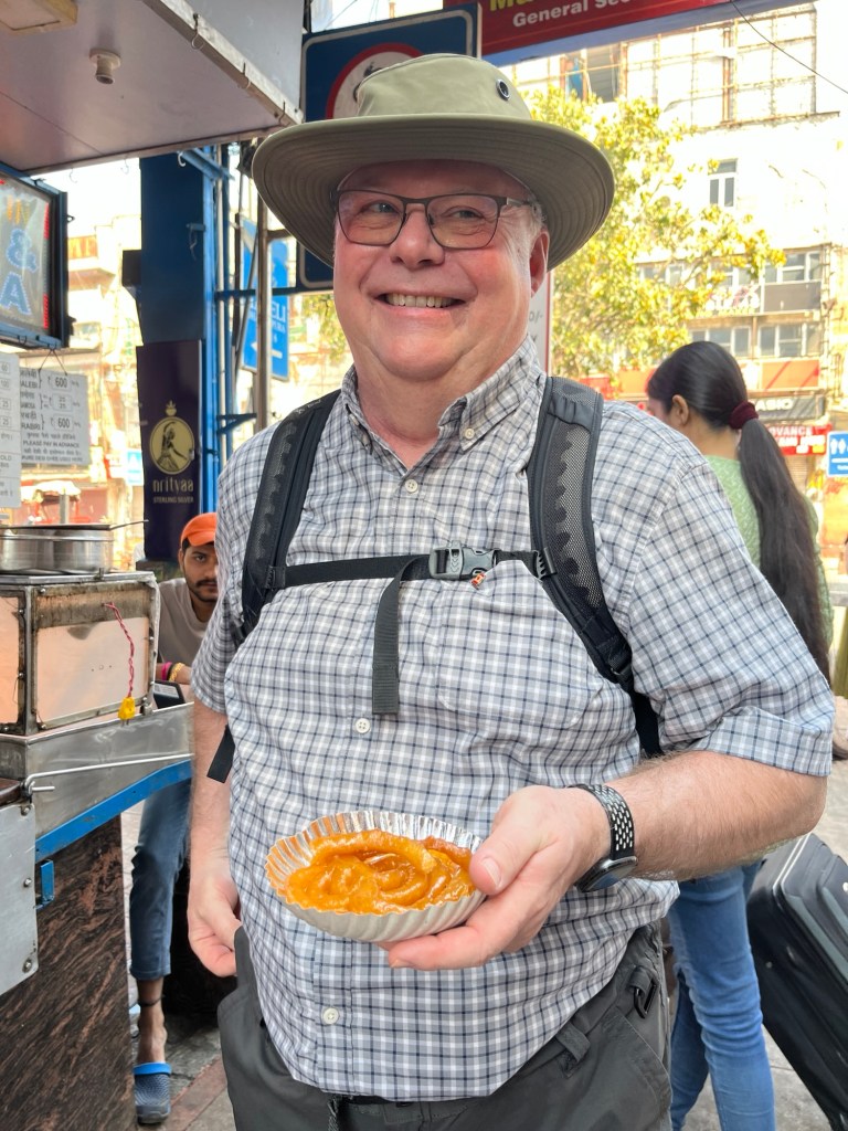 Our guide took us down the narrow alleyways of the old town. We tasted delicious jelabi, masala chai and yummy pea samosas made right in front of us.
