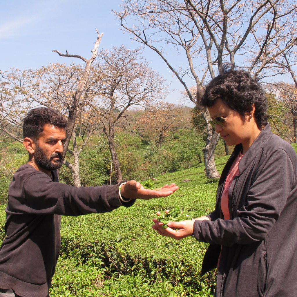 This fellow showed us how they picked the leaves with a scythe for our guide Chime and us to smell. They smelled like fresh leaves. 😆Chime is from Darjeeling, another tea producing area.