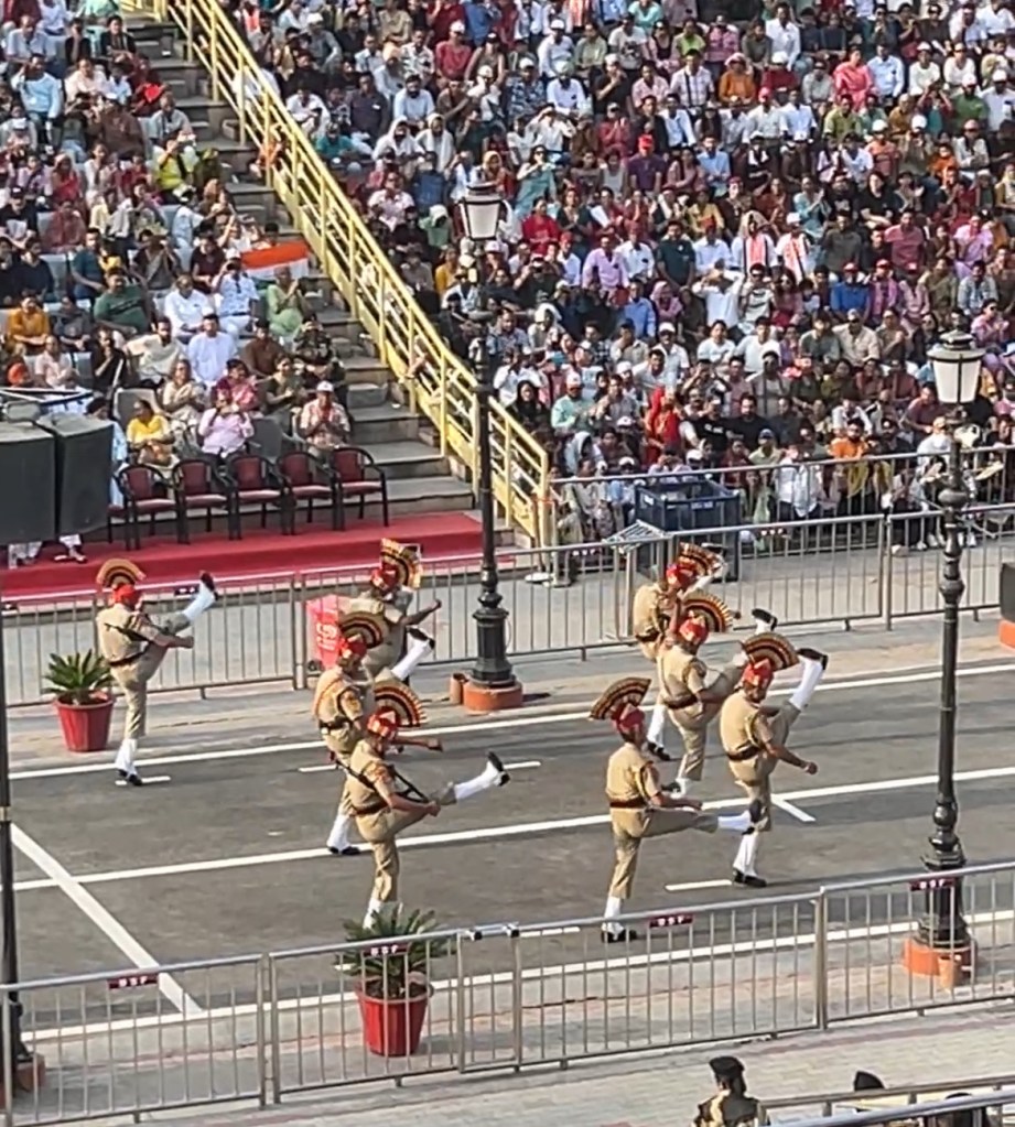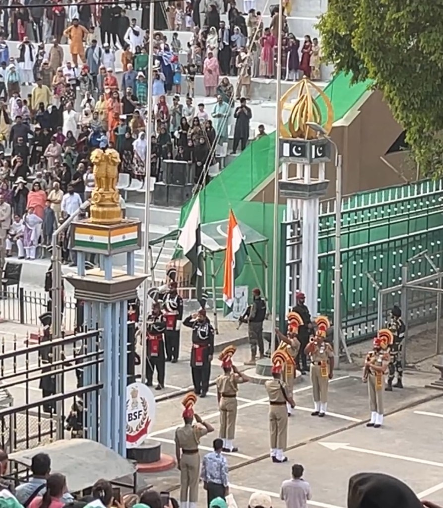 It culminates with the border fences opening and two of the guards shaking hands before lowering the flags of India 🇮🇳 and Pakistan🇵🇰.