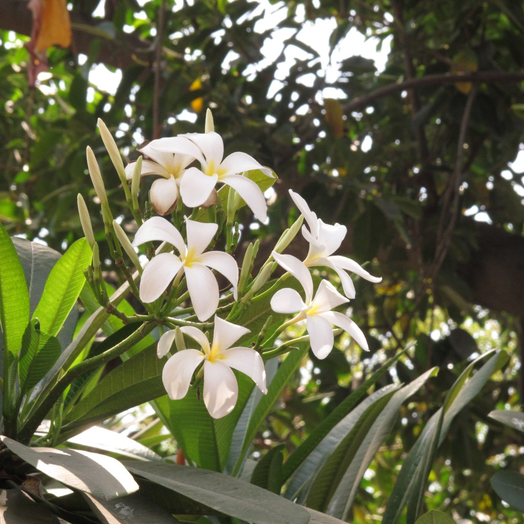 The gardens are beautiful with water lilies and frangipani trees.