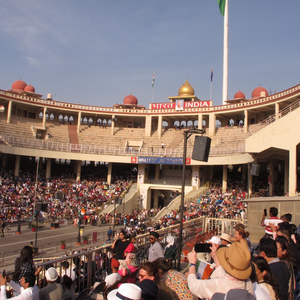 We travelled out of town to the India Pakistan border for the lowering of the flag ceremony. This ceremony occurs at dusk every day of the year, come rain or shine.