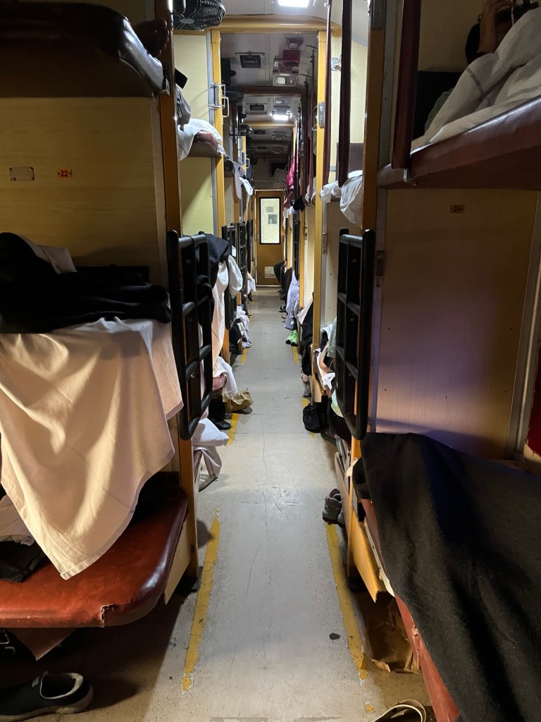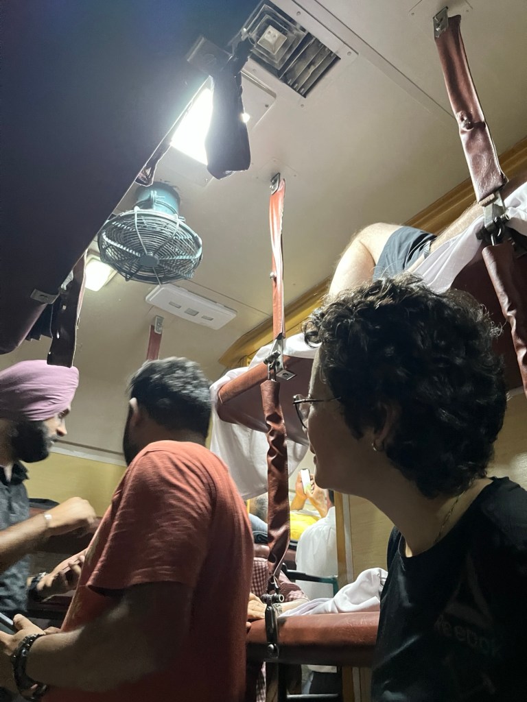 First we had an interesting overnight train journey. We are a group of 5 and were supposed to have a compartment to ourselves. However, like everywhere in India, the train was full. A member of a family somewhere else in the rail car had a bed in our berth. His family probably sent him to sleep elsewhere so they could sleep – he was a loud snorer! There was no door on the compartment and others nearby were on their phones – no one uses earphones here! Needless to say we didn’t get much sleep. And the bathrooms were stinky!