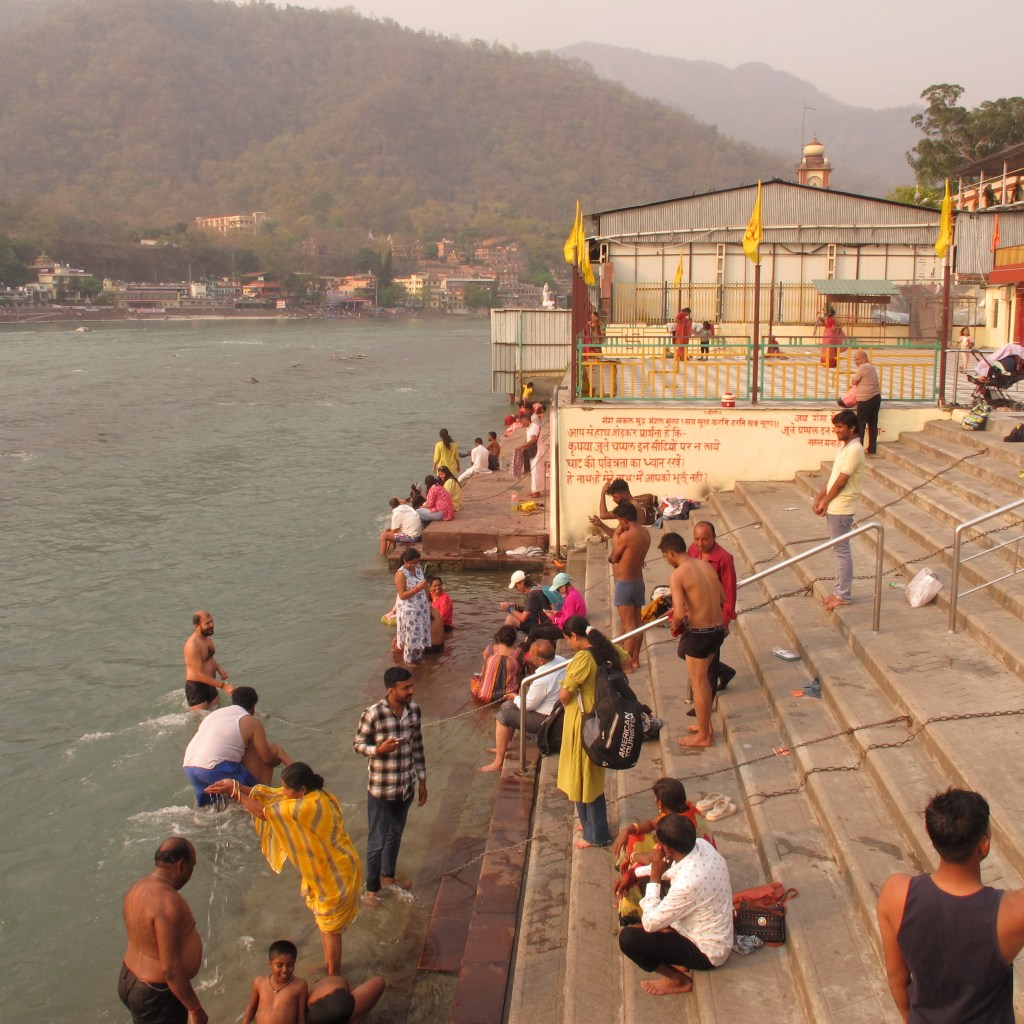 We arrived to a crowded city called Haridwar. Thousands of people were on a pilgrimage, hence the busy train! This was our first sight of the wide Ganges River.
