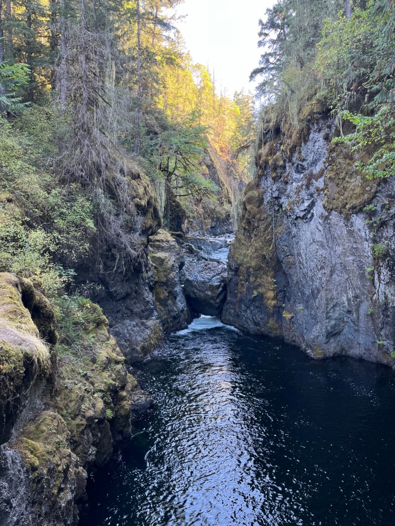 We drove out to Englishman River Falls. I’d camped there 30 years ago with my daughters. I remembered being in awe of the huge Douglas Firs swaying in the wind around our tent. Such good memories!