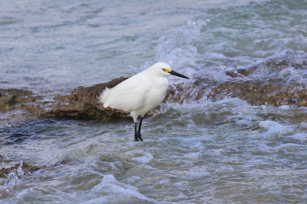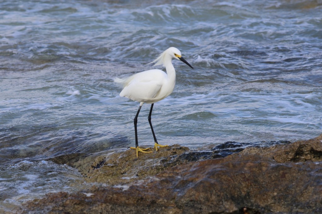 We walk the beach from our hotel each morning. The beach has soft white sand which is a wonderful contrast to the azul blue ocean. Every day this single white bird is on the shore in the same place. It’s friendly and lets me approach to take a photo.