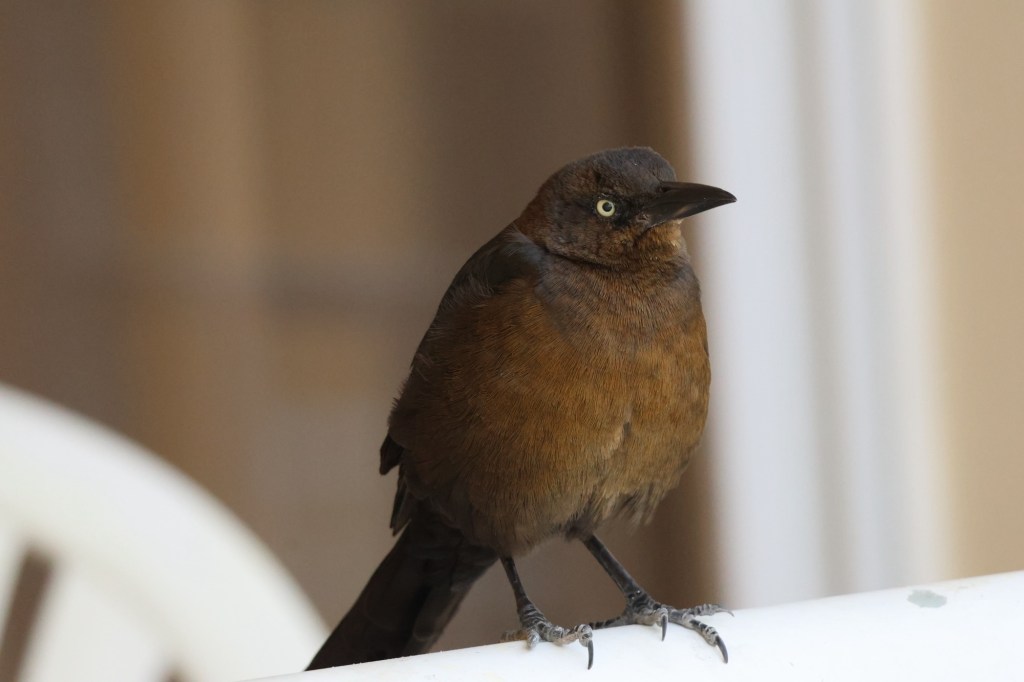 We have breakfast in a dining room which is open on three sides. Despite putting up netting to deter the Grackles from entering the area, the odd one still makes it in. They are noisy and have a long tail like a Magpie. They’ll steal the food off your plate if you’re not watching!