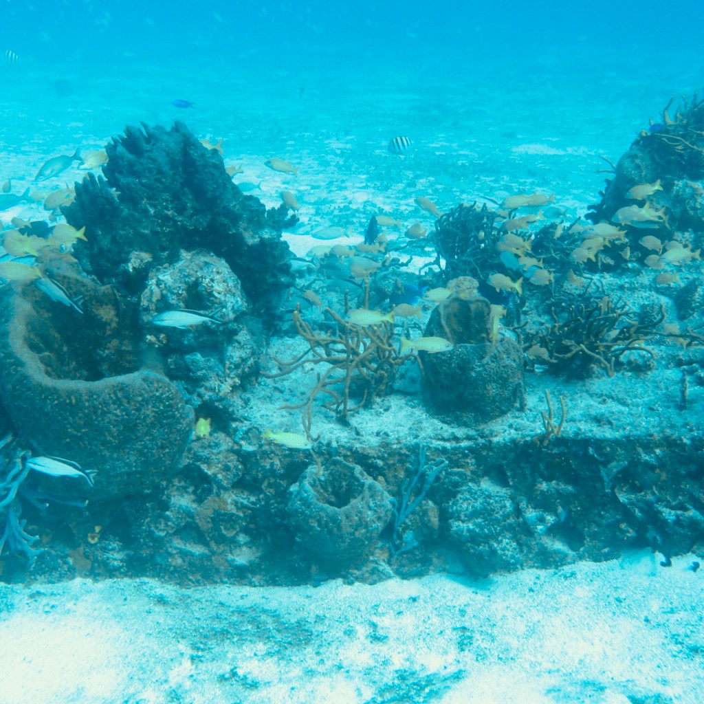 Twenty five years ago marine biologists sunk cement blocks and a boat to grow coral here in Cozumel.