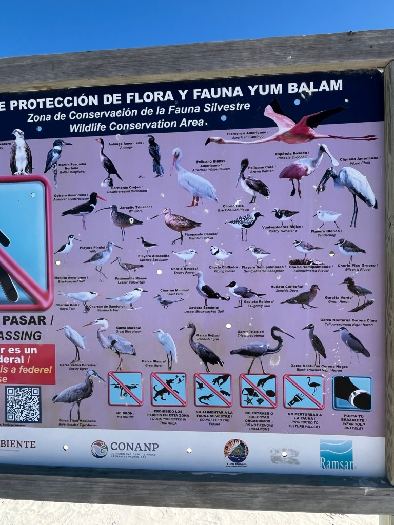 Each day we walked off breakfast along the beach out to the sand spit when the tide was low. The area is called Yum Balam. There were all kinds of migratory birds and lots of unique shells.